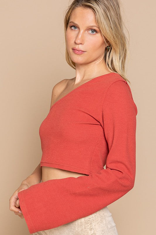 Caramel One Shoulder Cropped Knit Top