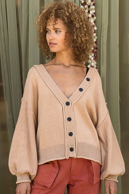 Dropped Shoulder Button Down Cardigan