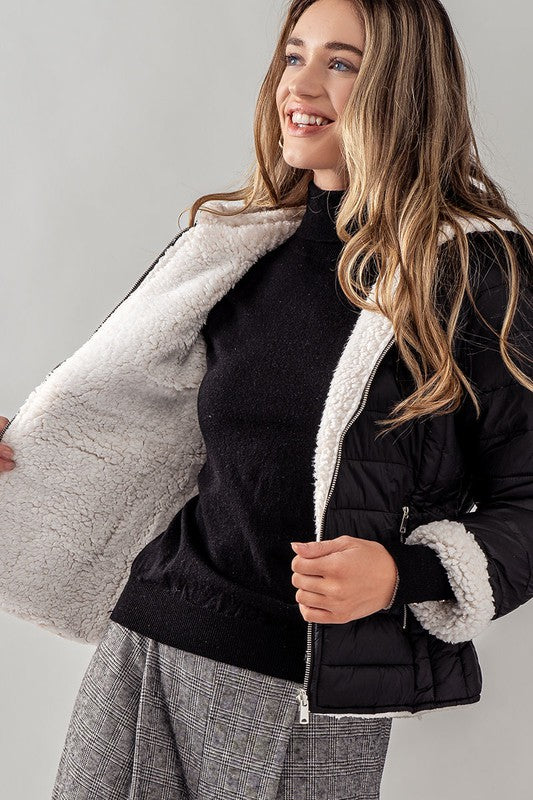 Puffer Jacket With Hoodie Black