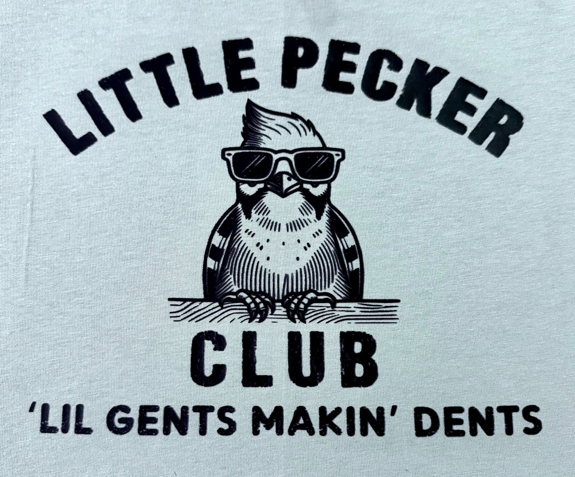 Expertly crafted and designed, the L'il Pecker Club Graphic T is the perfect addition to any wardrobe. Made with a soft and comfortable mint colored fabric, this unisex t-shirt features short sleeves and a classic crew neck. With a touch of adult humor, this t-shirt is sure to make a statement.